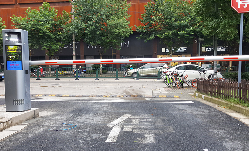 升级时,为顾及这种特殊的过宽的入口环境,采用了特别的车牌识别道闸一体机对开布局,既便于识别车辆自动放行,也不再需要人工配合。