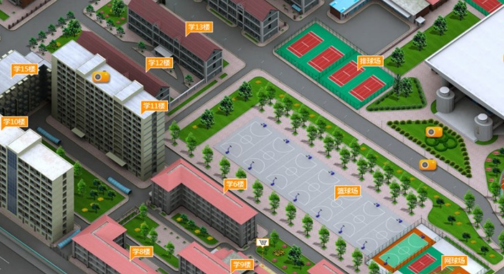 平台借助物联网、数字孪生等技术,将感应装备连接起来,通过数据传输及计算整合,对校园环境内智慧灯杆、智慧井盖、智慧垃圾桶等物体进行漫游、行走、驾驶、飞行(鸟瞰)等模式,解决人工巡检面临的巡视范围广、管理成本高、巡查数据未及时上报处理、综合效率低下等问题。管理者可根据需求选择不同的模式和三维可视化虚拟场景进行实时交互互动。场景里还融入了环境模拟加以点缀,同时也可通过与天气系统对接,实现环境模拟内容根据实际天气数据进行自动切换。以更加精细和动态的方式实现环境管理和决策的智慧。