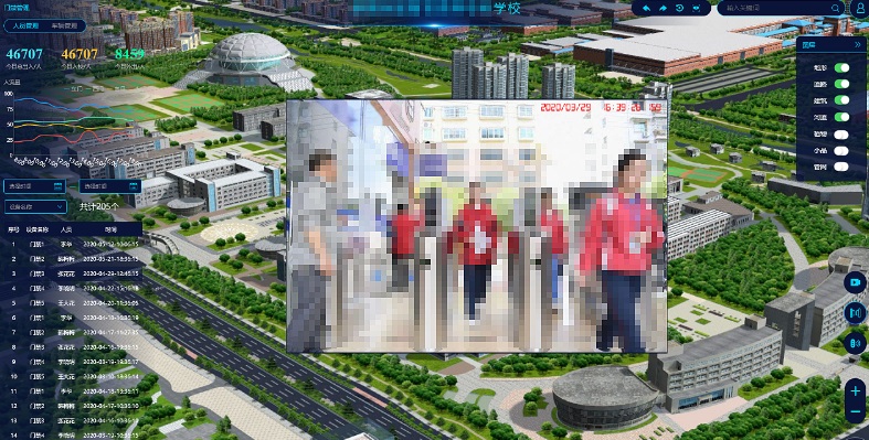 在校园门口、宿舍大楼、图书馆等设置门禁管理刷脸及刷卡的数据统计展示,按日、周、月等时间统计学生的进出总数,对校园信息安全态势进行实时监测,可对重点场所、楼梯楼道的人流密度监测,人流密度超标自动报警。通过对异常情况、突发事故的可视化溯源分析,帮助管理者及时发现信息安全隐患。