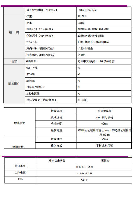 前拆式高精度红外触摸框,触摸精度达±1mm,触摸高度 3mm,支持 20 点触控,灵敏度高;